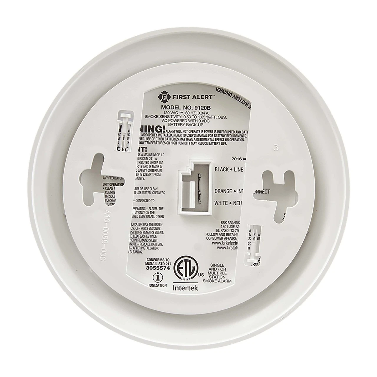 9120B Hardwired Ionization Smoke Alarm with Battery Backup