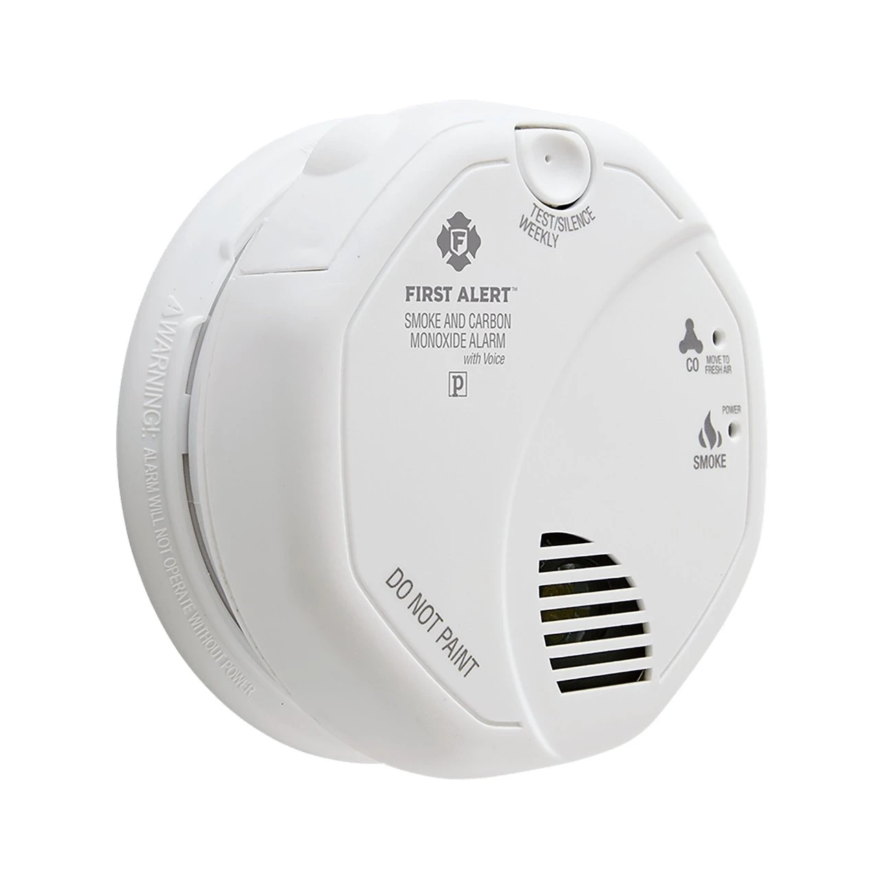 The First Alert SCO7CN Combination Smoke and Carbon Monoxide Alarm features a talking alarm that not only provides a verbal warning of the danger, but also tells you its location, so you can plan your escape to safety. Easy to program and operate, the talking combination alarm allows you to choose between 11 pre-programmed home locations. Indicator lights on the face of the detector display the presence of smoke or carbon monoxide, while an 85-decibel alarm provides a clear, loud warning upon detection.