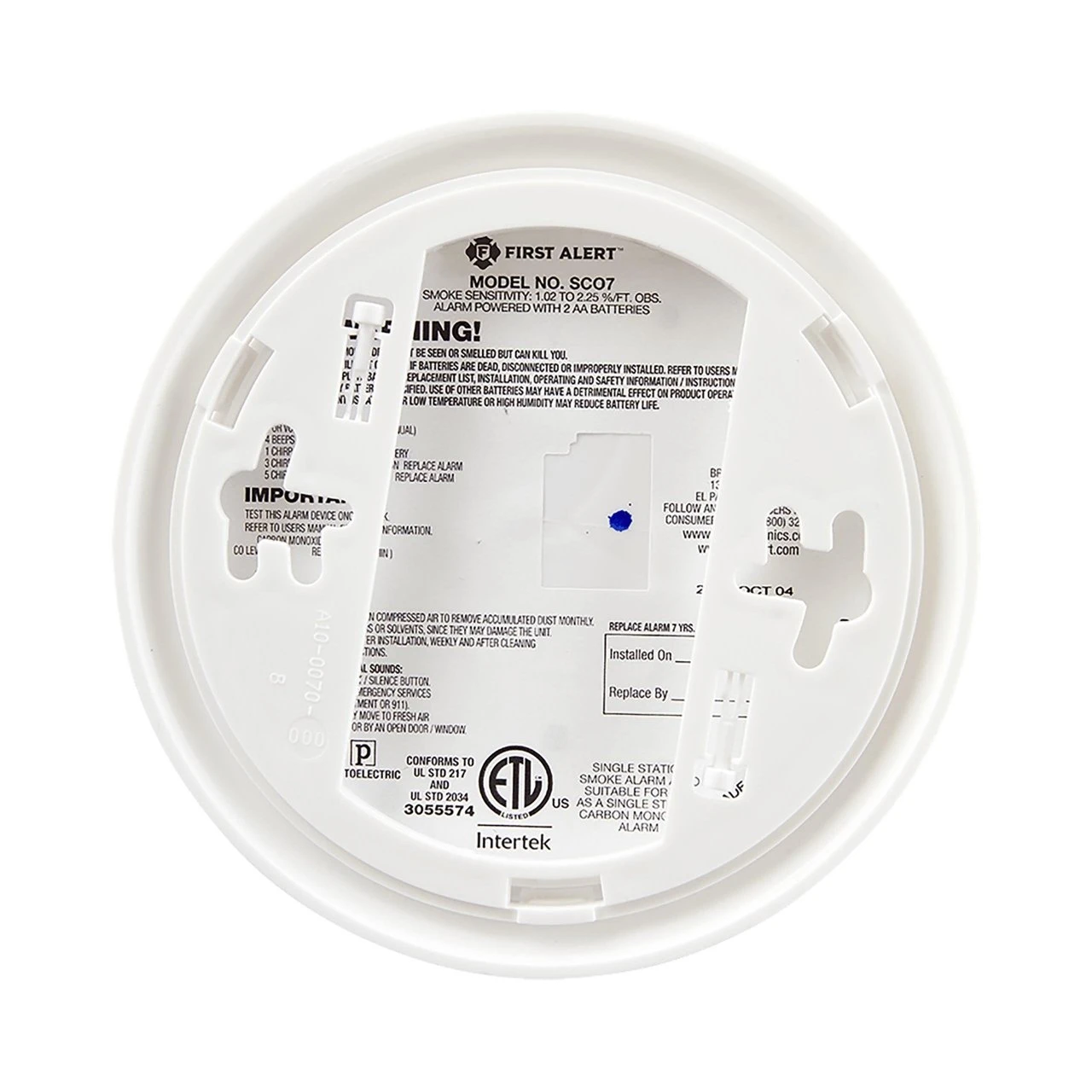 The battery-operated First Alert SCO7CN alarm comes equipped with a photoelectric sensor to provide the earliest possible warning of smoke and fire. The sensor is optimized to detect larger smoke particles produced by smoldering fires, such as those caused by unextinguished cigarettes. It also distinguishes between real threats, smoke and vapor produced during showering, cooking, and other everyday activities, helping minimize the number of false alarms.